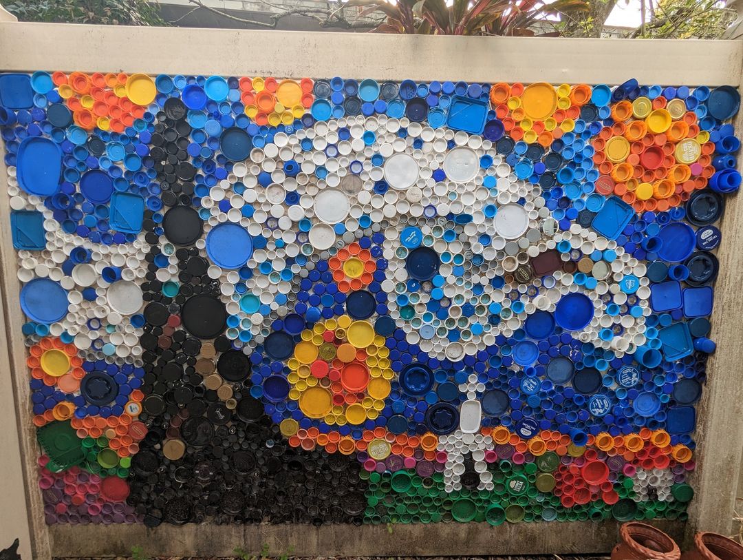Reply to comment by RChamltn in After 2 years, my wife finished the mural on our fence made completely of recycled plastic lids. by houseofbacon