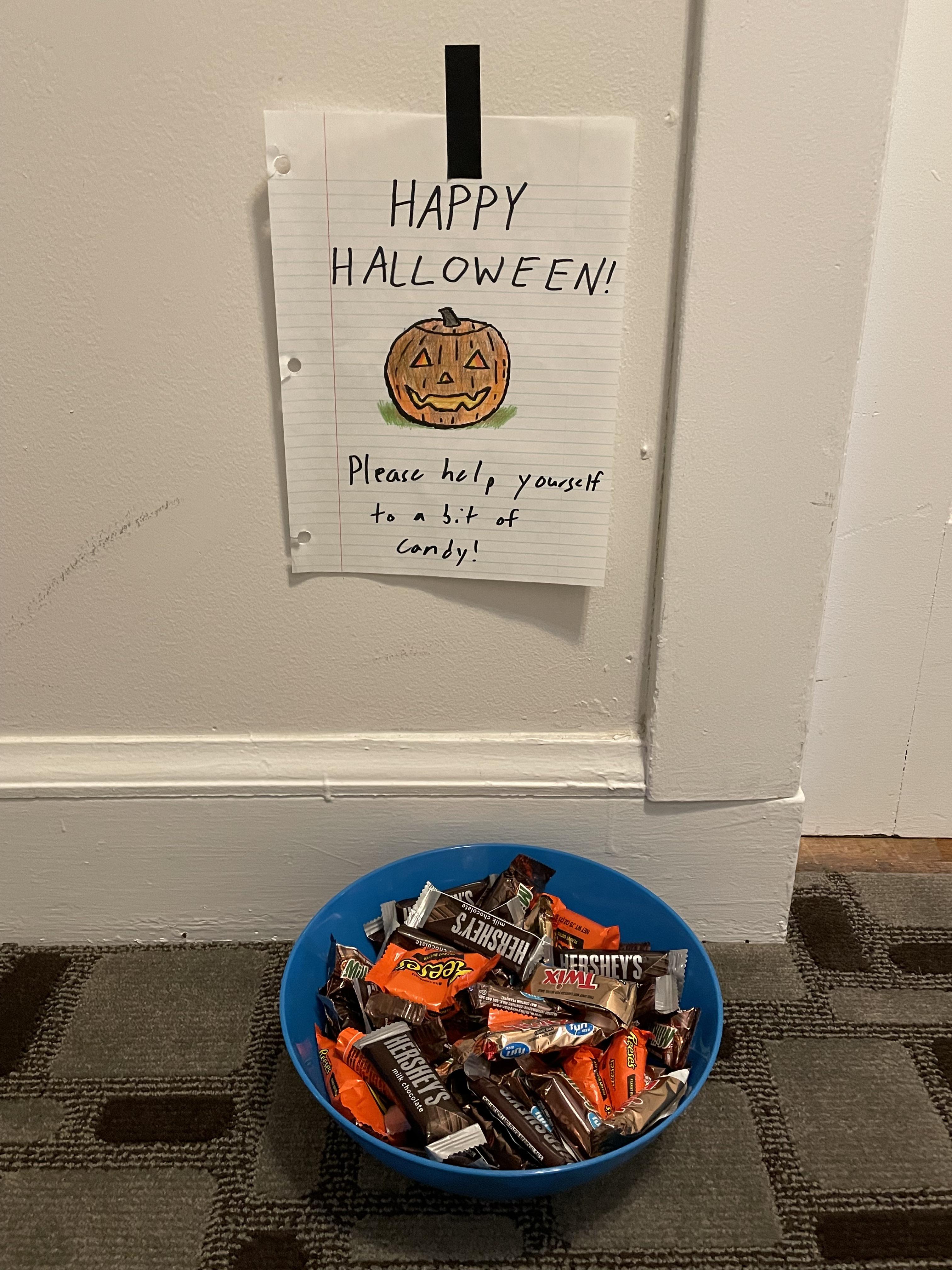 [OC] Putting candy out for my neighbors in my building. Happy Halloween! 🎃🍬 Submitted by hskfmn t3_yiibbm on October 31, 2022 at 5:21 PM in pics 6 comments 3