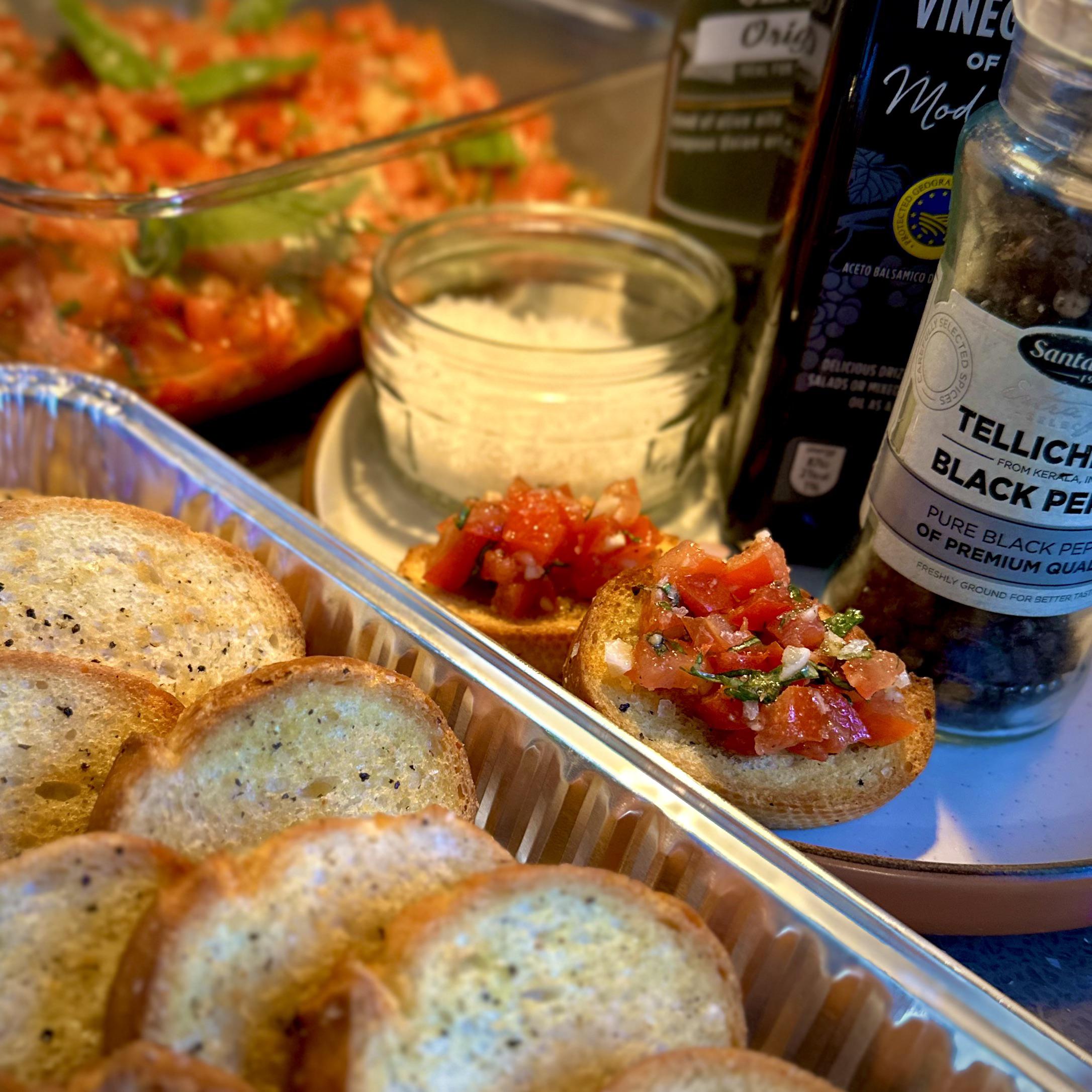 Bruschetta can be made 2 days ahead of time, crostini can be made 1 day ahead of time, or prepped and frozen, then cook on the day!