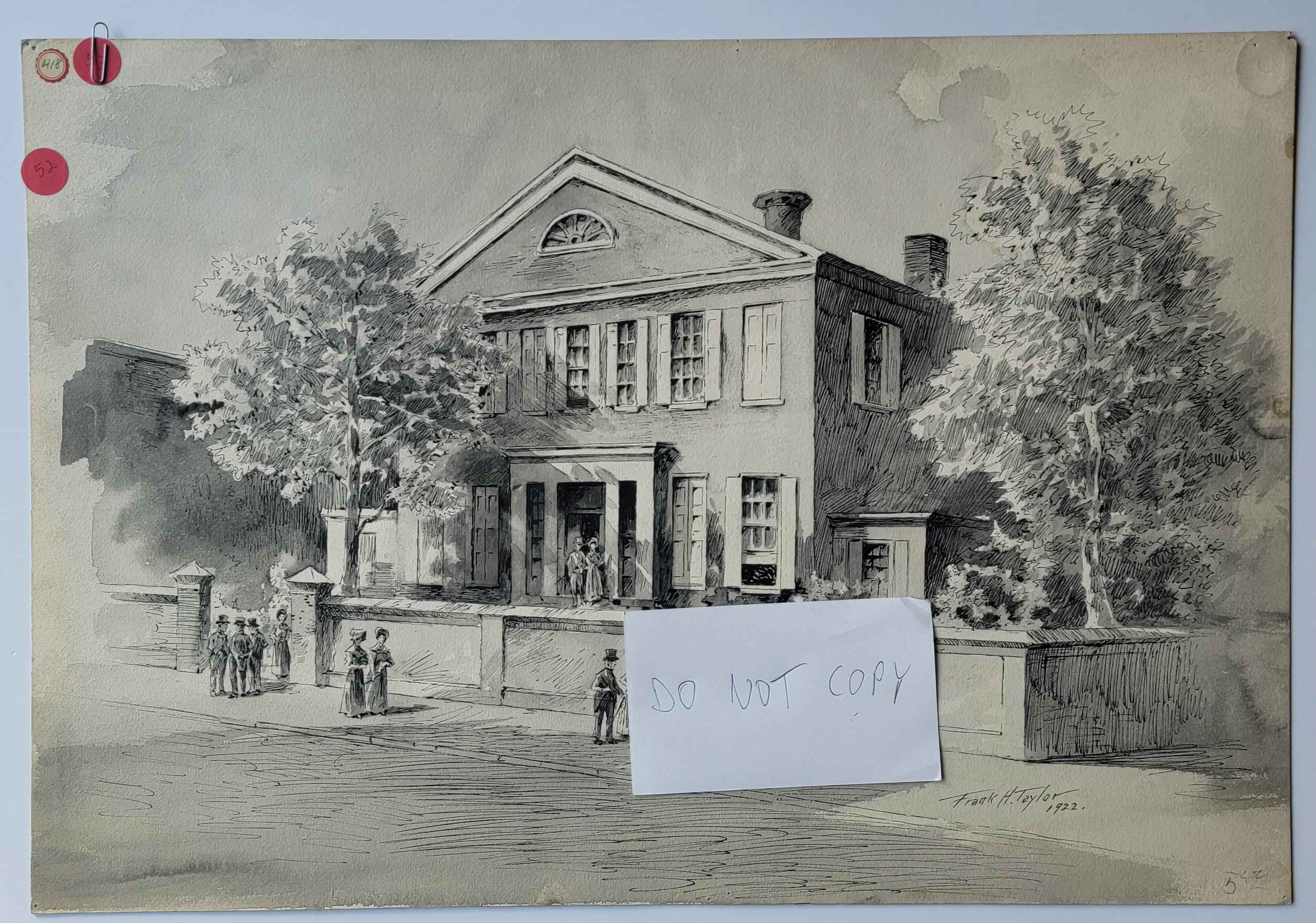 Based on Frank Taylor's annotations on other pieces, we know he completed some of his work based on photographs or drawings, which he credits the original. I assume this is from a drawing, which unfortunately, he did not credit the original.