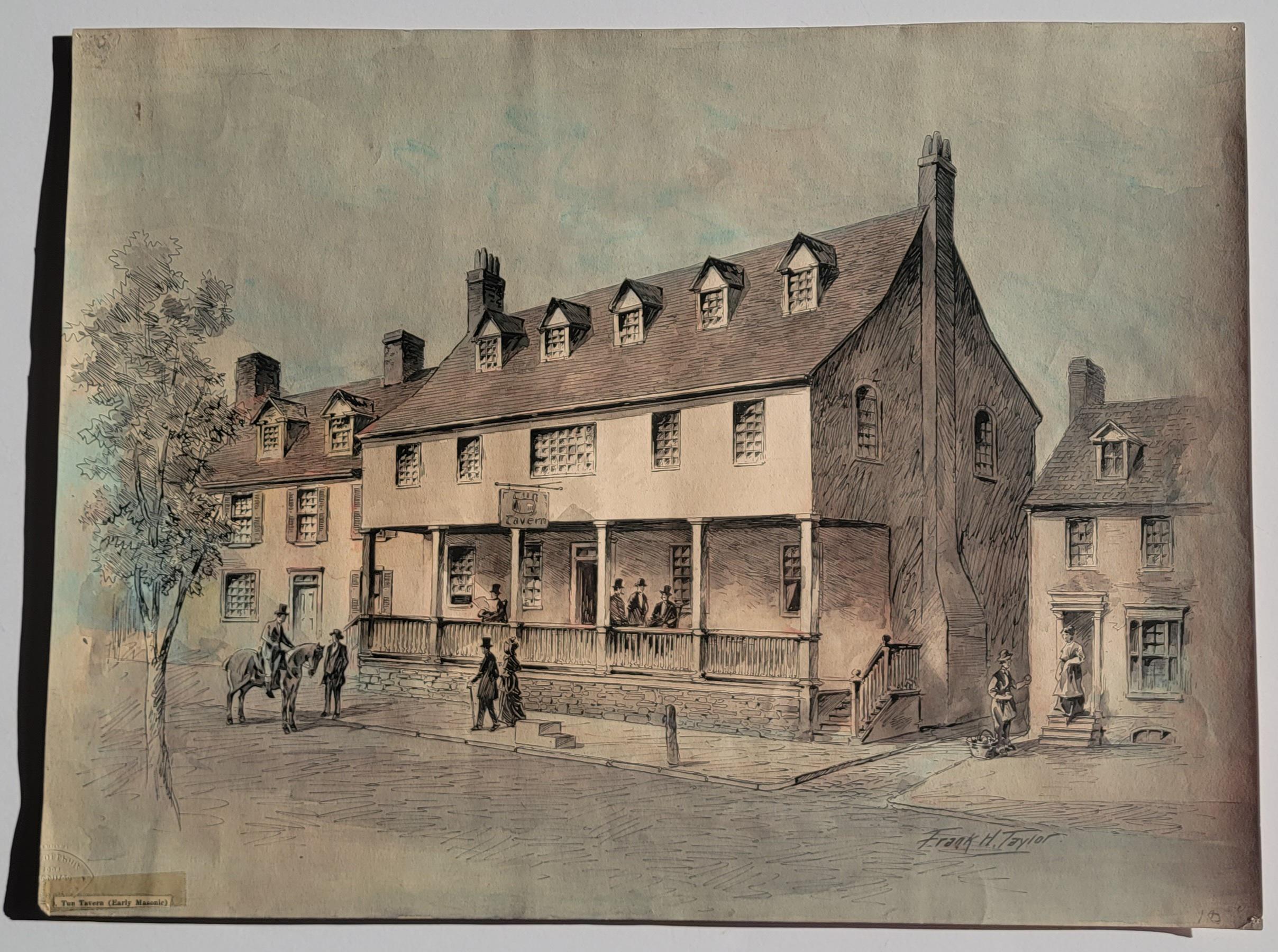 In the reading of Frank Hamilton Taylor's will, in June of 1927, it was directed that his series of Philadelphia negatives, drawings and prints were to be sold at auction if not bought by the Historical Society of Pennsylvania. The Society chose not to buy them, so they went to auction, sold in lots, disappearing into the private collections, turning up sporadically over the decades.