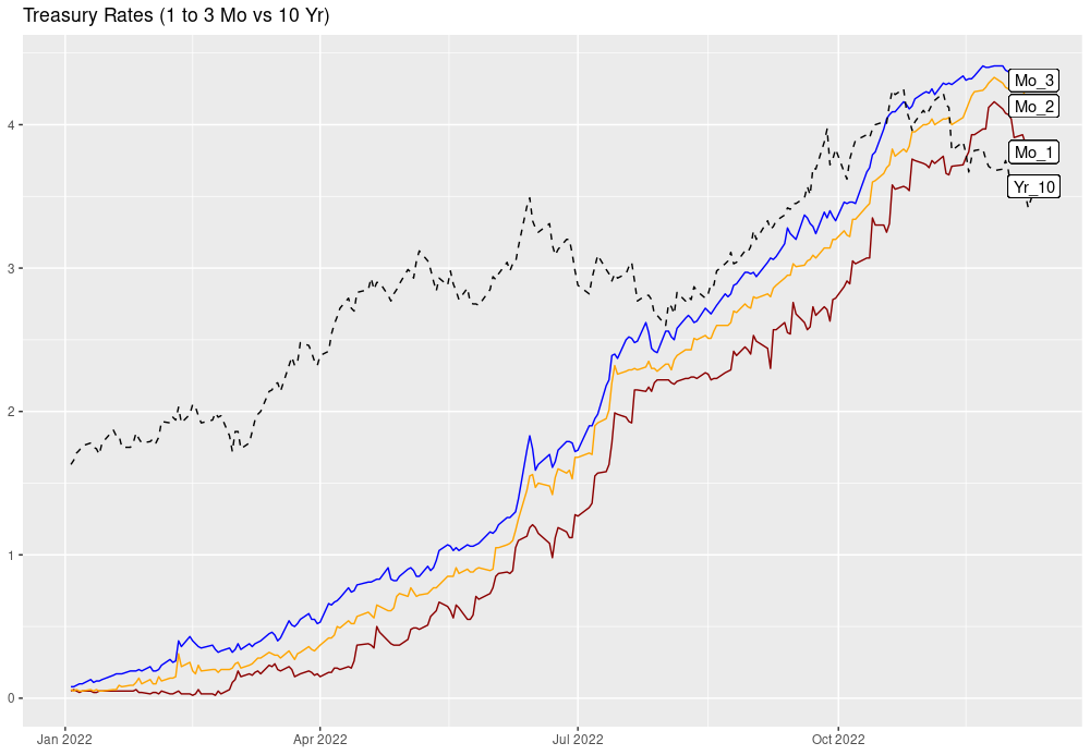 Interest rate comparisons from 2022. Intersting to see rates rise from almost 0% to 4% with short term rates exceeding the 10 year.