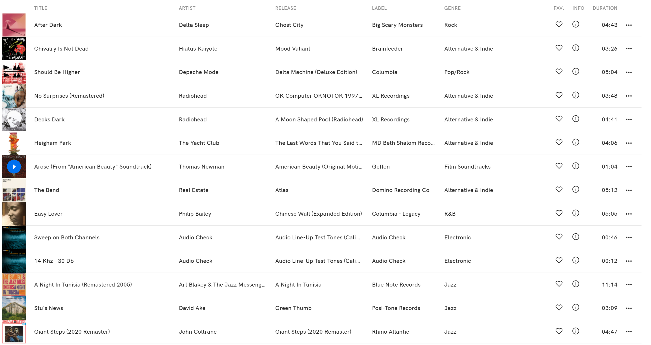On busy math rock stuff (Delta Sleep, The Yacht Club) I couldn't grasp the difference and was frantically going back and forth, just to make a guess in the dark. On modern electronic tracks (i.e. Chivalry Is Not Dead by Hiatus Kayote) one playback sounded a bit sharper then the other, sometimes it had more bass. Every time I liked a playback a little more, I attributed that playback to Qobuz (well, it should sound better, right?). The difference was never obvious. Radiohead tracks sounded virtually the same. The American Beauty soundtrack, Arose, has these heavenly little bell plucks, which sounded more clouded during one of the playbacks. The test sounds seemed to be more revealing, as it seemed to me that one playback had somewhat more aliasing, especially on 14kHz tone. The test lasted about 40 minutes.