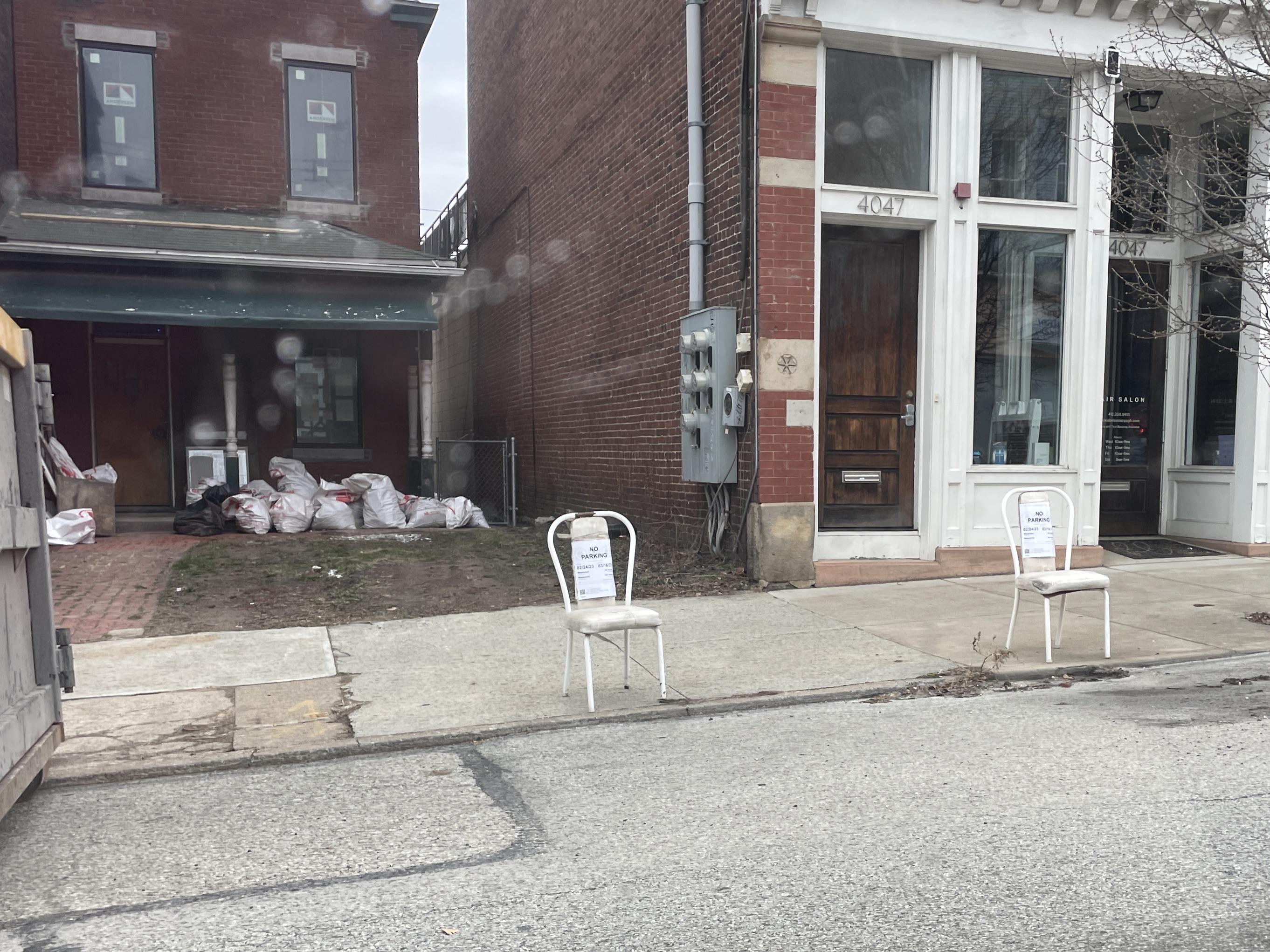 Not only were they parking chairs, but they were also construction notices