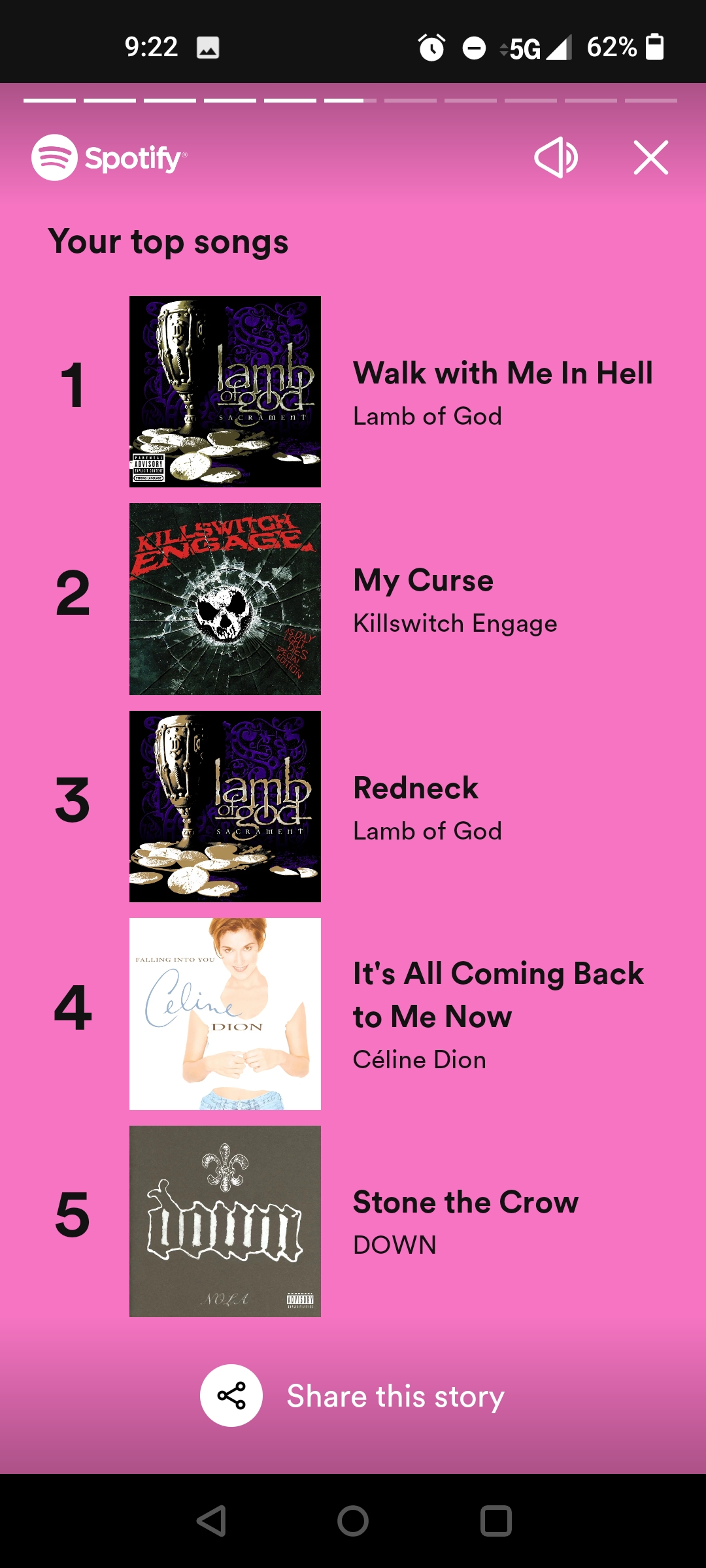 Reply to comment by Emergency-Mouse5566 in One of these things is not like the other. my top 5 Spotify list, metal, metal, metal, Celine Dion, metal by revjoe918