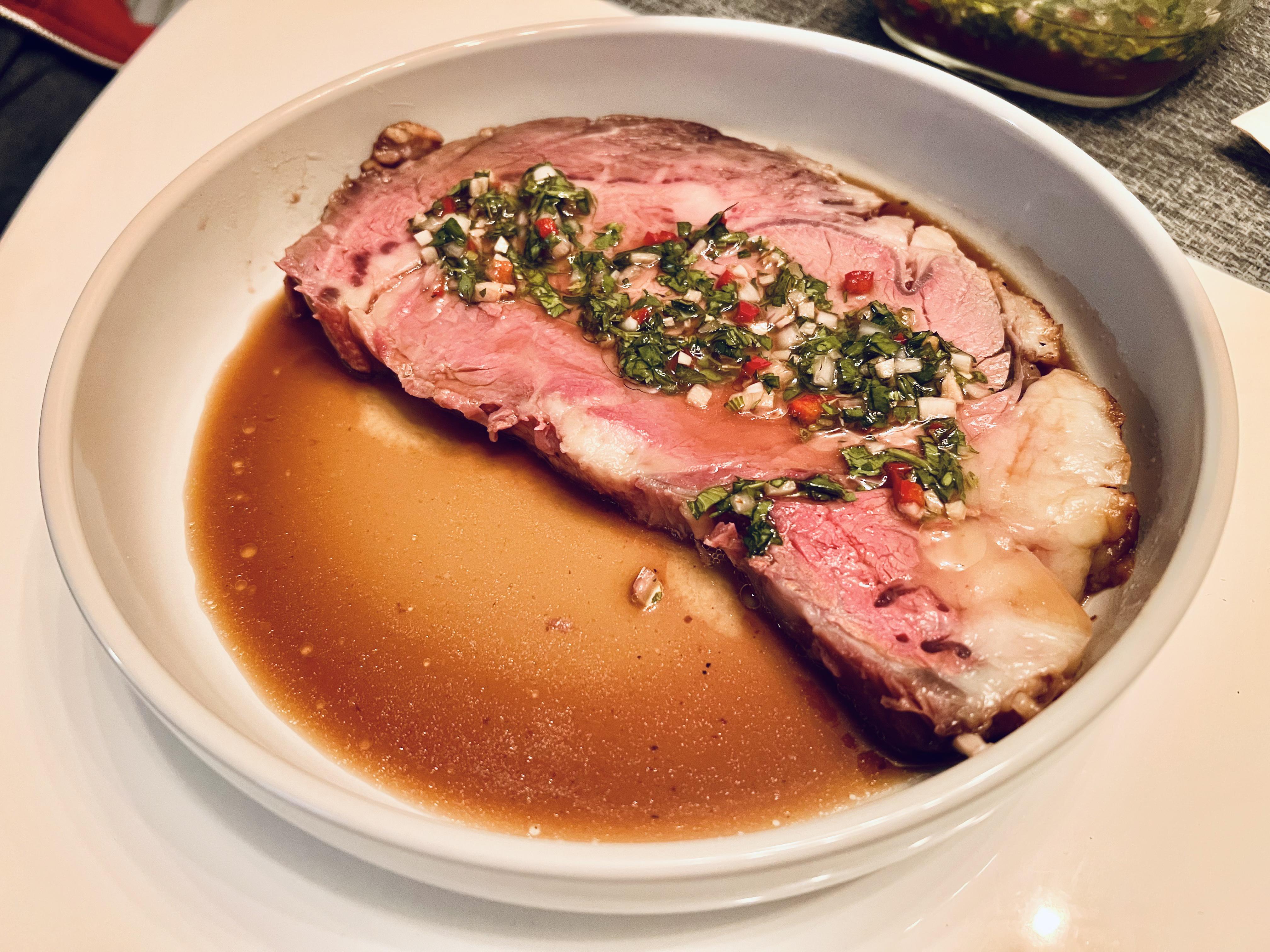 slimlim OP t1_iy63bn5 wrote on November 29, 2022 at 12:46 AM Reply to comment by The_Shroomerist in [Homemade] Prime rib, oxtail au jus, chimichurri by slimlim Nope, used the cooked oxtail for a kimchi fried rice for another dinner party. Permalink Parent 2